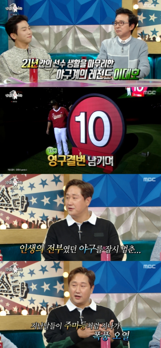 '라디오스타'에서 이대호가 얼마 전 은퇴식을 치뤘다고 전했다.
