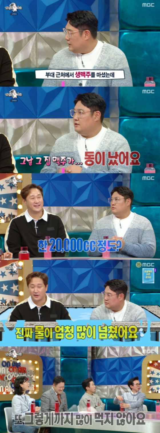 김구라는 "생맥주는 어느 정도 먹냐"고 물었다. 최준석은 "그냥 맥주집에 가서 생맥주를 먹었는데 그 집에 동이 났다"고 전했다. 최준석은 "진짜 조금밖에 없었다. 20000cc정도?" 라고 말해 놀라움을 안겼다.