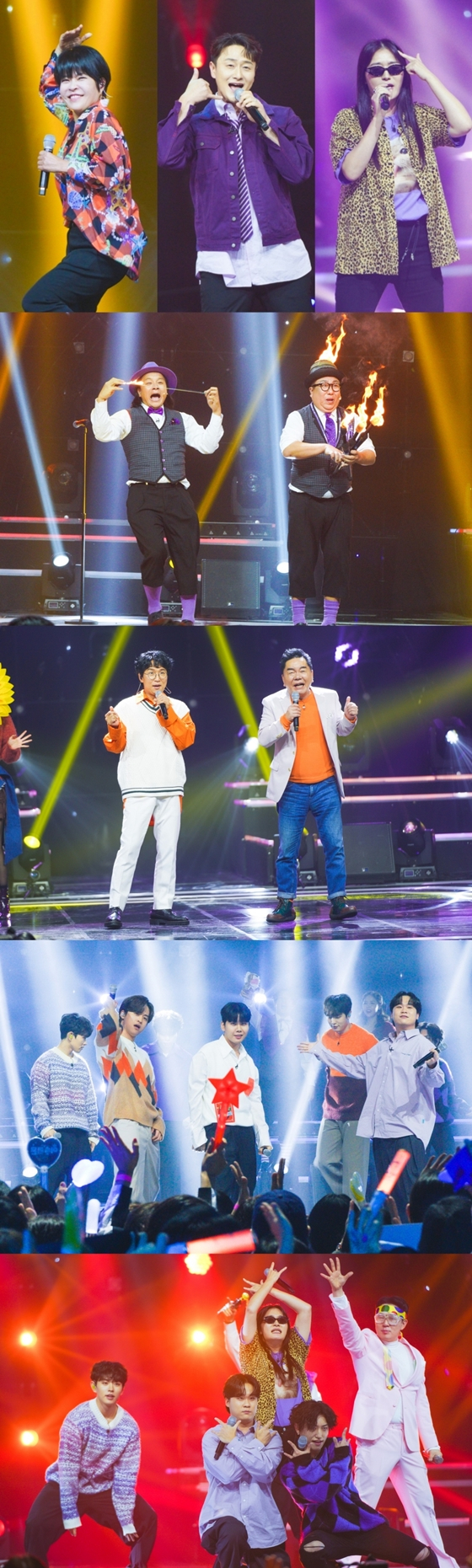 또한 김미려는 김동현, 손진욱과 함께 유닛을 결성해 박미경 'hot stuff'를 가창하며 3인 3색 고음 매력을 보여준다. 쌍둥이 개그 듀오 이상호&이상민은 이솔로몬X조연호와 클론 '초련'으로 호흡을 맞춘다. 장신 조합의 시원시원한 칼군무가 관객들의 마음까지 사로잡았다는 전언.