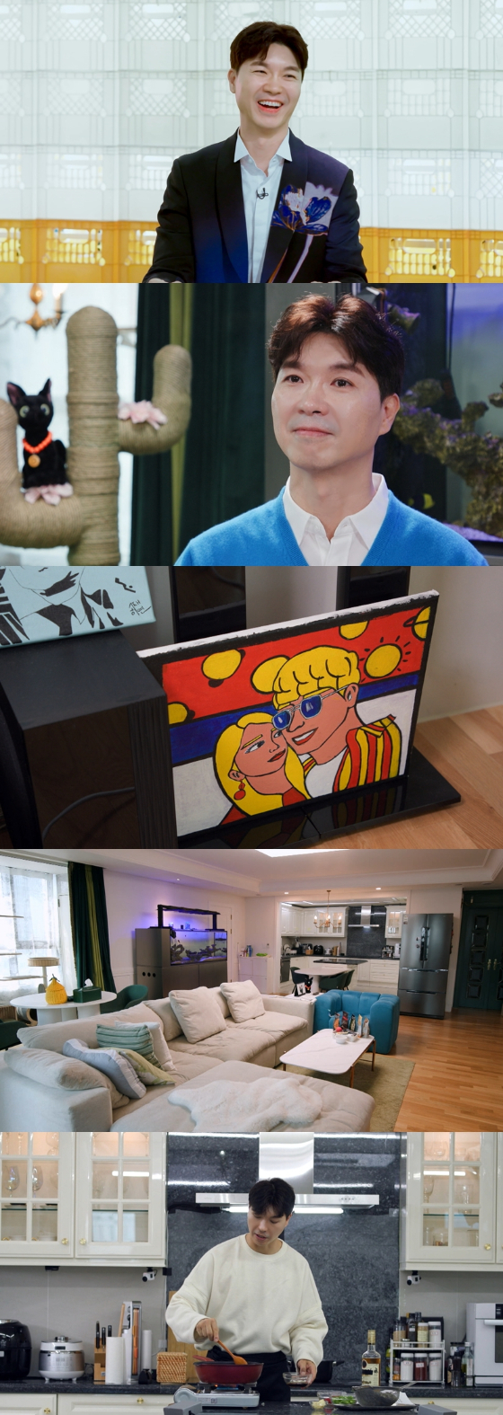 이날 공개된 VCR 속 박수홍은 소중한 가족인 반려묘 다홍이와 함께 아침 일상을 시작했다. 박수홍은 아침부터 반려묘 다홍이, 오랫동안 키워온 물고기 식구들의 밥부터 챙겼다. 박수홍의 신혼집 풍경이 공개된 것은 처음. 다홍이가 뒹구는 포근한 거실을 시작으로 주방에는 각종 조리 도구들이 깔끔하게 정리되어 있었다.