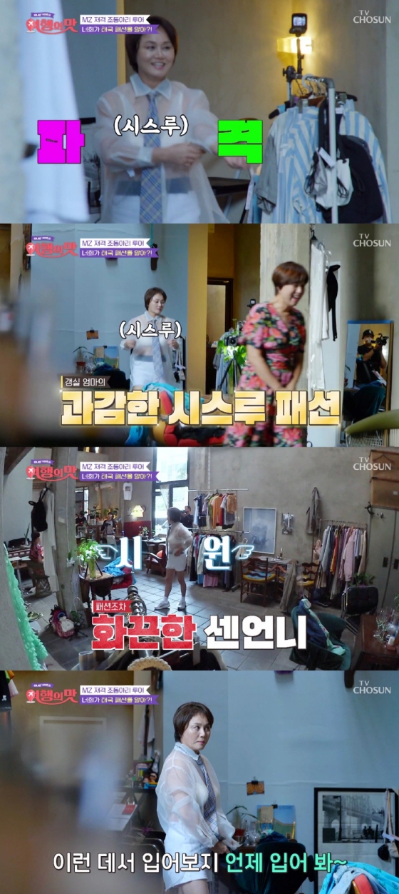 이에 이경실은 "이런 데서 입어 보지. 언제 입어보냐"며 오히려 다양한 포즈를 취해 당당한 매력을 뽐냈다.