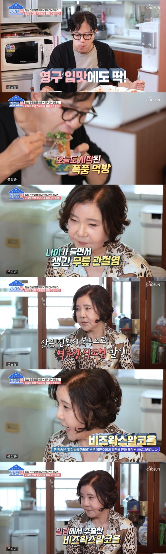 엄유신은 "아무래도 한해 한해 나이가 드니까 건강에 관심이 많아졌다. 그런데 갱년기 이후에 건강에 문제가 생겼다. 무릎도 시큰거리고 계단 내려가는 것도 힘들었다"라고 고백했다.