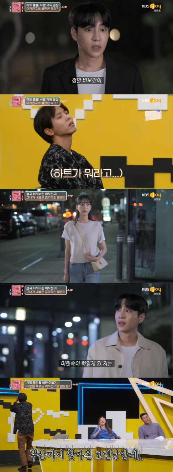 1일 오후 방송된 KBS Joy 예능프로그램 '연애의 참견3'에서는 계속 사랑을 확인하는 여자친구 때문에 고민하는 남자의 사연이 전해졌다.