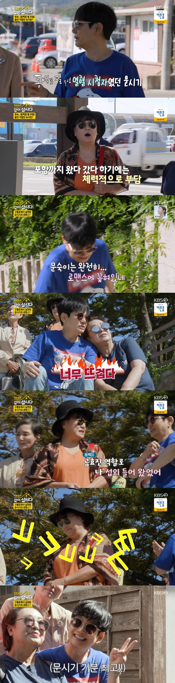 이후 네 사람은 구룡포 공원 공원 입구 계단을 올랐다. 일명 동백이 계단이었다. 안문숙은 '동백꽃 필 무렵'의 주인공 공효진을 언급하며 극중 로맨스에 푹 빠져 있는 모습을 보였다. 언니들에 비해 유독 신난 막내 안문숙이었다. 안문숙은 혜은이와 함께 '동백꽃 필 무렵' 속 한 장면을 따라하기도 했다.