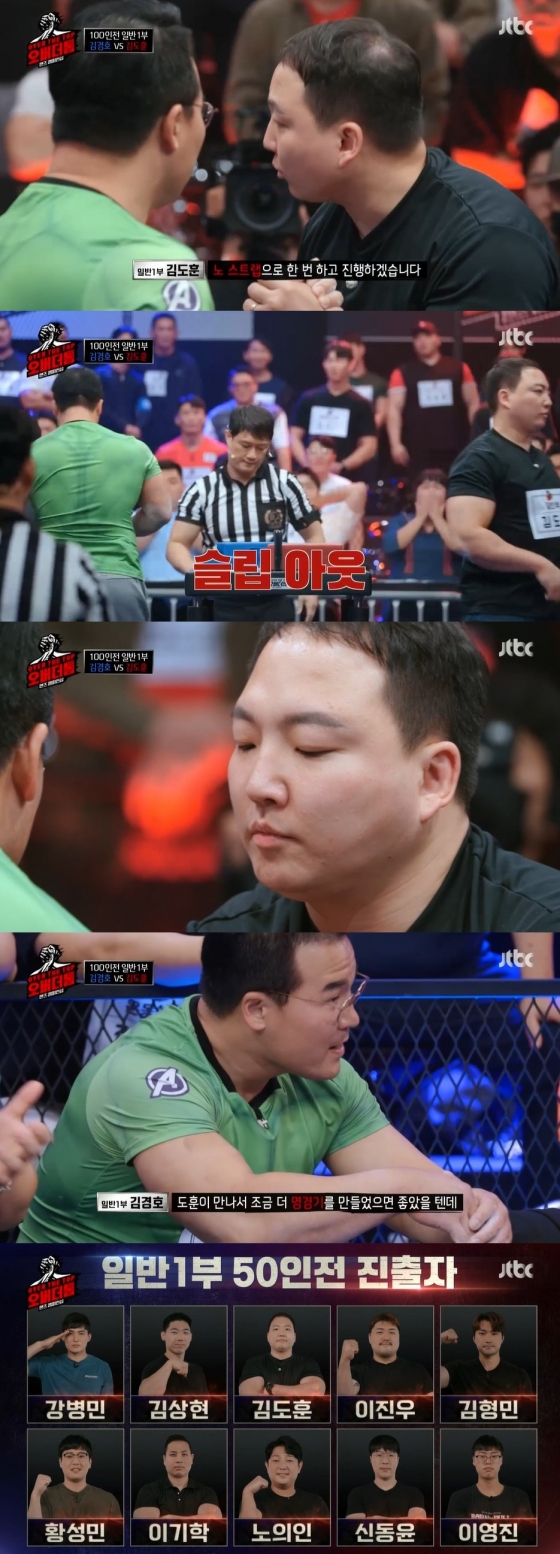 일반1부에서 김도훈은 강력한 우승 후보 김경호와 대결하게 돼 이목을 끌었다. 전현무는 52세 최고령 도전자이자 한의학 박사 김경호에게 팔씨름의 매력을 물었다. 김경호는 "손을 맞잡음으로써 빨리 친해지고 정이 느껴진다"라고 웃었다.