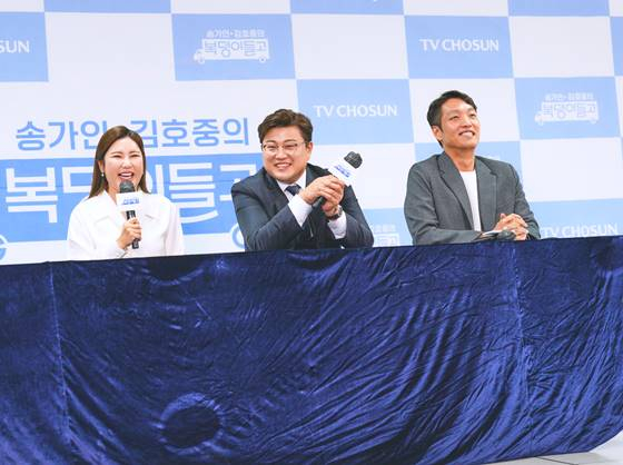 9일 오후 TV조선 예능프로그램 '복덩이들고(GO)'(이하 '복덩이들고') 온라인 기자간담회가 열렸다. 이승훈CP, 송가인, 김호중이 참석했다.