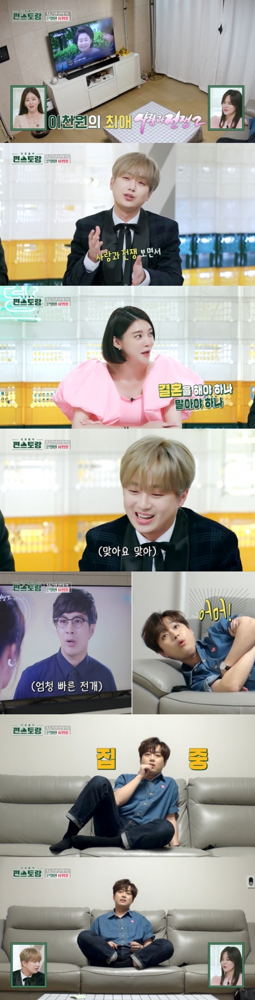 이찬원은 '사랑과 전쟁'에 흠뻑 빠진 모습이었고, 스튜디오에서 "'사랑과 전쟁' 보면서 결혼을 해야될까 말아야될까 생각하기도 한다"고 말해 웃음을 자아냈다.