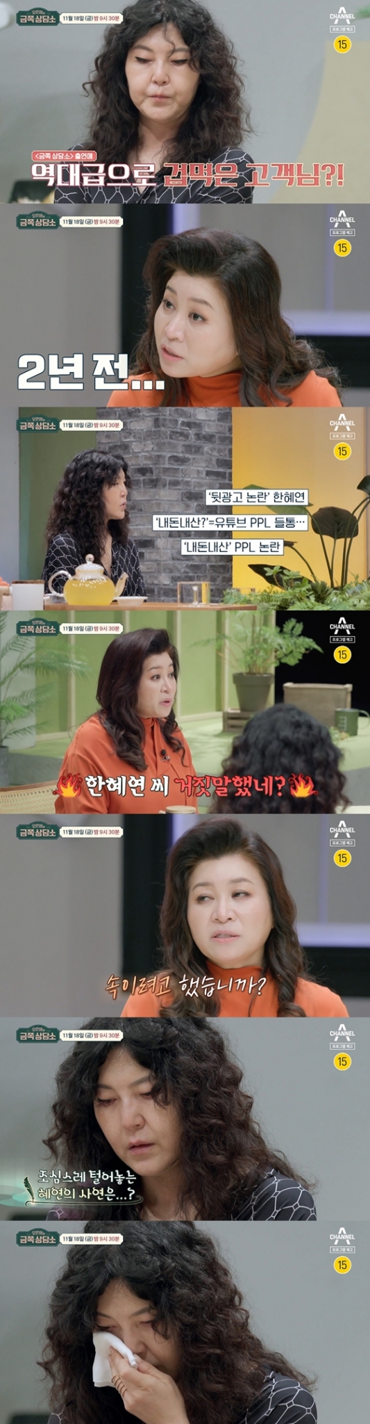 한혜연은 "내돈내산으로 해서 방송을 여러 번 했었죠"라고 말했다. 2020년 논란이 불거졌던 한혜연의 '뒷광고 의혹'에 대한 것이다.