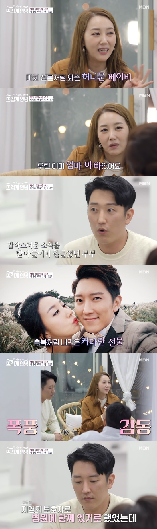 이와 함께 민지영 김형균 부부는 지난 5년의 결혼 생활을 회상했다. 민지영이 40살의 나이에 결혼을 한 가운데, 두 사람은 아이 욕심 없이 결혼생활을 시작했다고. 하지만 허니문 베이비가 생겼고 두 사람은 기쁜 마음으로 부모가 되기를 기다렸다.
