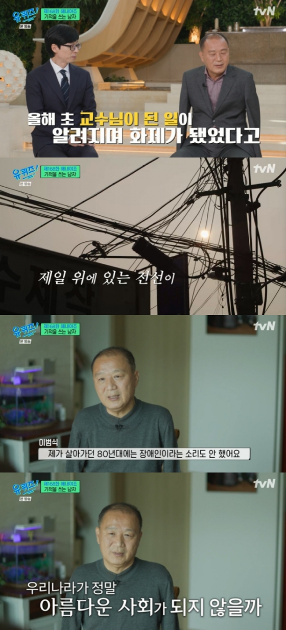 MC 유재석은 "올해 초 교수님이 되면서 유명해졌다고"라고 물었다. 이범식은 "그때가 47살이었다. 학생들도 저 같은 교수는 처음 봤을 거다 '과연 내가 잘 가르 칠 수 있겠나'했다"고 답했다.