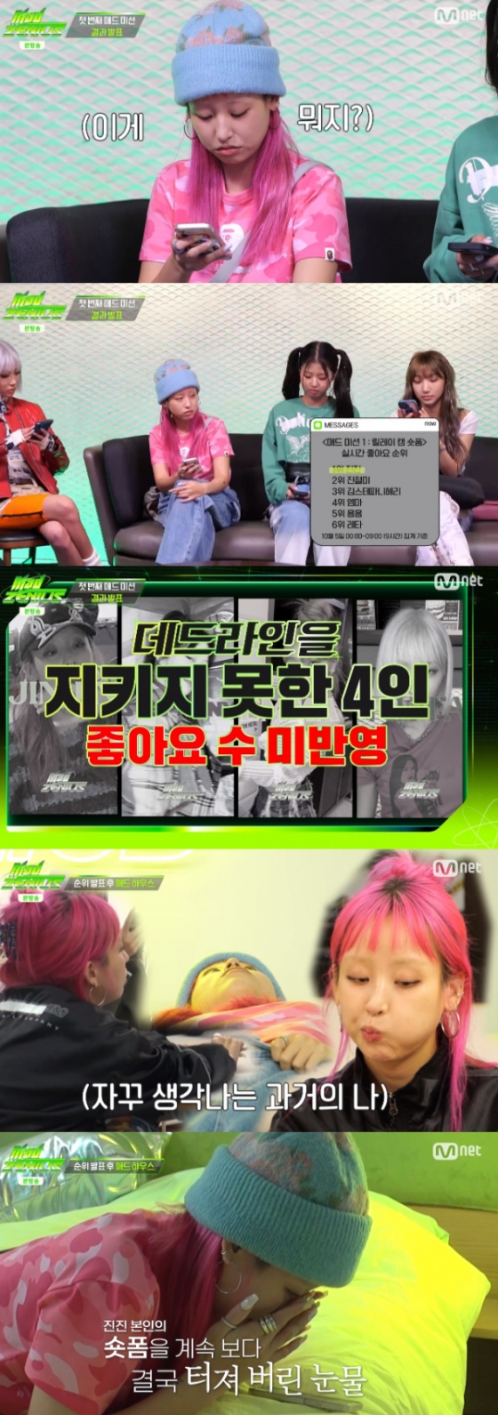 이후 진진은 방 침대에 가만히 누워 휴대폰을 쳐다봤다. 진진은 매드 미션 실제 '좋아요' 순위가 적힌 문자를 보고 있었다. 진진은 "조회 수도 제일 높네"라며 아쉬움에 눈물을 흘렸다. 진진은 "1위가 아니면 아무 소용 없다. '좋아요' 수가 아까웠다"고 전했다.