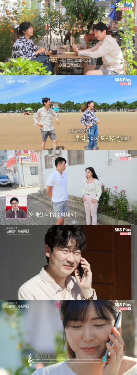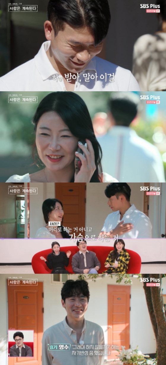 제작진은 8기 영수에 "다 끝났는데 어떻냐"고 물었다. 8기 영수는 "후회 없이 임해서 미련이 없다. 술 좀 줄여야겠다. 운동도 좀 하고 자기반성을 했다"고 전했다. 제작진은 "영수 님한테 사랑이란?"라고 물었다. 8기 영수는 "어렵다. 그럼에도 불구하고 계속될 거다"라고 전했다.