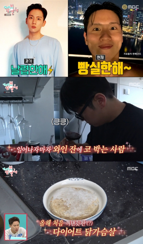 한해는 다이어트를 위해 나름 아침 식단으로 위해 요거트와 사과를 먹으며 자제하는 모습을 보였지만 이후 다시 식사를 시작해 모두를 당황케 했다. 밥과 다이어트용 닭가슴살, 달걀, 김치를 셋팅해 2차로 식사하자 남창희는 "그럼 아까 요구르트와 사과는 왜 먹었냐"라고 물었고, 이에 한해는 멋쩍은 웃음을 보이며 "배변 활동을 원활하게 하려고"라고 답했다.