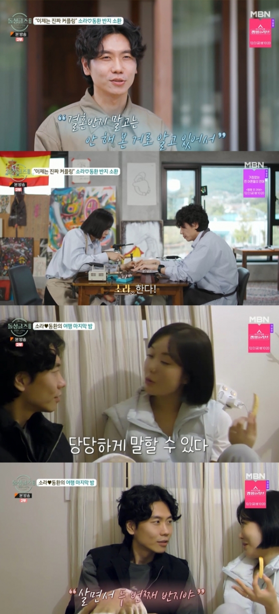 식사를 마친 후 두 사람은 다시 오늘 만든 커플링에 대해 언급했다. 이소라는 "당당하게 말할 수 있다. 살면서 두 번째 반지다"라고 했다. 이어 최동환은 "나는 몇 번째지?"라며 농담했지만 이소라는 "괜찮다. 난 과거 별로 신경 쓰지 않는다"라며 쿨하게 반응했다.