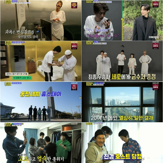 지난 20일 방송된 KBS 2TV 예능 '홍김동전' 16회는 '수저게임' 최종회에 이어 '동전세끼 홈스테이'가 펼쳐졌다. 홍진경, 김숙, 조세호, 주우재, 우영 등 5멤버들은 마지막까지 한 치 앞을 알 수 없는 두뇌게임을 펼치며 최후의 금수저가 되기 위한 대결을 펼쳤다.