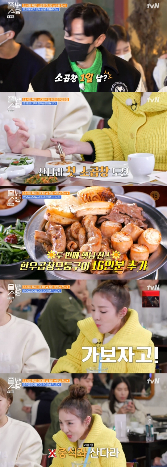 21일 오후 방송된 tvN 예능프로그램 '줄 서는 식당'에서 박나래, 입짧은햇님, 권율, 산다라박이 한우곱창 맛집에 방문했다.