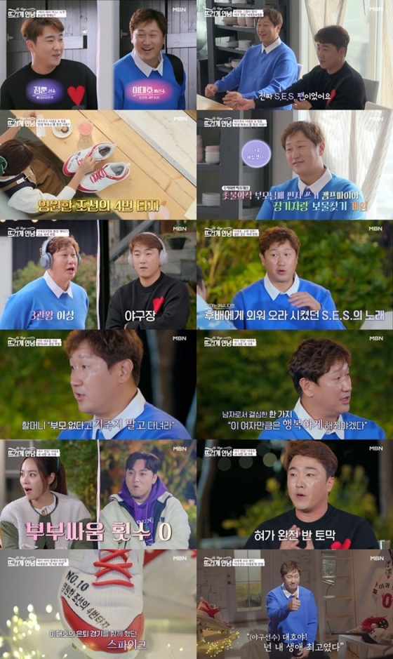 할머니가 돌아가신 후, 그의 야구인생에도 슬럼프가 찾아왔다고. 이대호는 "21, 22세 때 무릎 수술을 하면서 가장 힘들었다"며 "그 슬럼프 기간, 여자친구였던 지금의 와이프가 큰 힘이 되어 줬다. 그때 남자로서 이 여자 만큼은 평생 행복하게 해주겠다고 다짐했다"고 떠올렸다. 이에 정훈은 "대호 형은 형수와 통화할 때 혀가 반토막 난다. 진짜 다정하다"며 '닭살 사랑꾼'임을 폭로해 웃음을 안겼다.