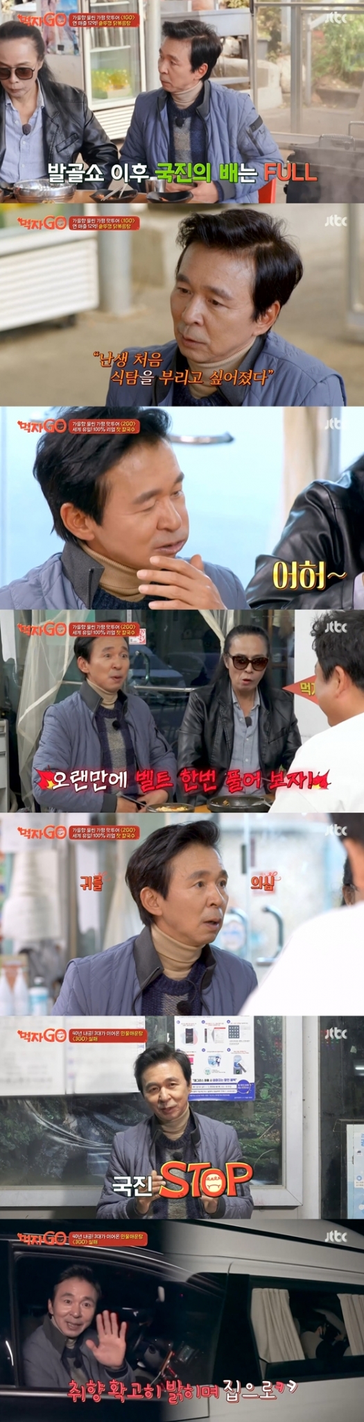 이어 두부조림을 주문했다. 김국진은 "이거 다시 식사아냐"라고 외쳤다. 이어 "금년 들어서 과식하는 거 같아. 간만에 벨트 한번 풀어보자"라고 말하기도 했다.