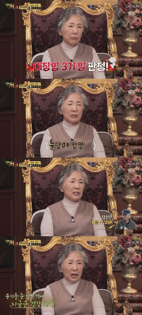 이어 "병원에 갔더니 대장암 3기 말이라고 하더라"며 "눈앞이 캄캄하고 이대로 죽겠구나 싶었는데 우리 남편이 '의사 선생님 말씀만 잘 듣고 하라는 것만 하면 나을 수 있다"고 용기를 줬다"고 회상했다.