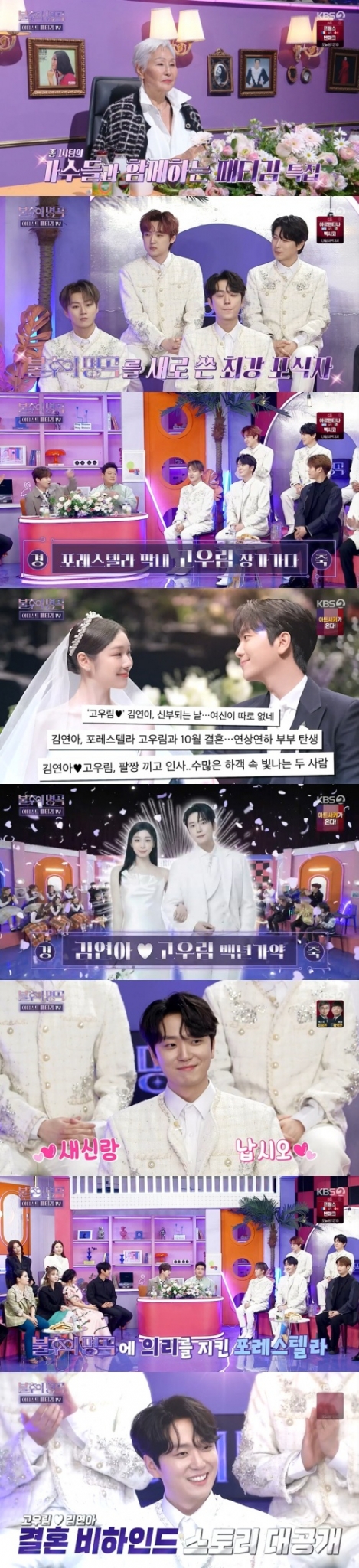 또한 이찬원은 "그리고 경사스러운 일이 있습니다. 고우림 씨 결혼을 축하드립니다. 너무 부러웠다"라며 고우림의 결혼을 축하했다. 이어 "의리의 포레스텔라다. 결혼식 후 '불후의 명곡'이 바로 첫 방송이라고 합니다"라며 고마움을 전했다.