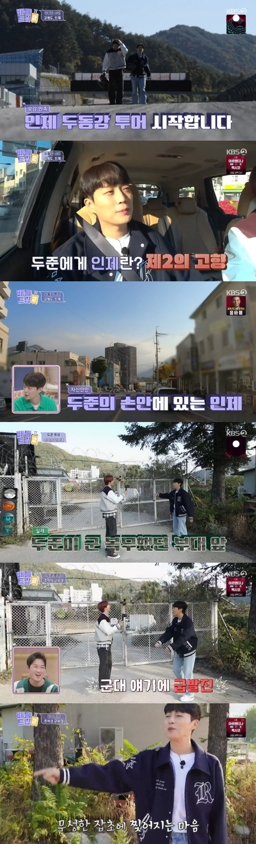 윤두준은 손동운과 함께 강원도 화천으로 향하는 차에서 "인제에 와 본 적 있냐"라고 물었다. 손동운은 "인제는 와본 적이 없는 것 같다"고 답했다. 윤두준은 "강원도 인제. 제2의 고향"이라고 말했다. 이에 손동운은 "군 생활을 인제에서 하셨지 않냐. 인제 하면 생각나는 먹거리들이 있냐"라고 물었다.