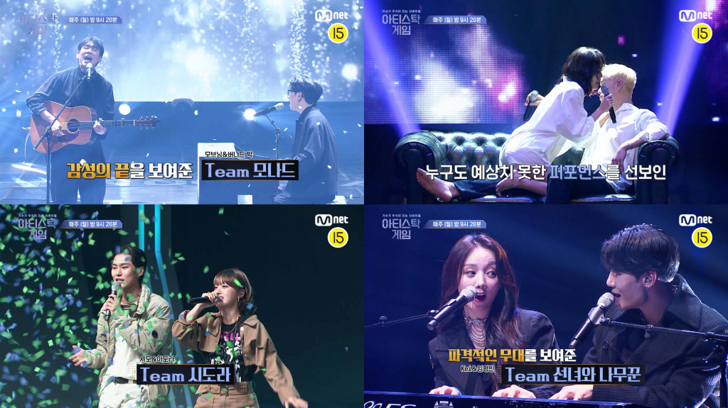팀 JOjo(조곤X트웰브), 팀 바다쏙수안(이바다X수안), 팀 남반구(남현X아이디얼스), 팀 키코밀리(키코X에이미리), 팀 결정체(조예결X이소정), 팀 별공구(별은X109)가 듀엣 게임 무대를 선보인 가운데 이번 주 방송에서는 팀 선녀와 나무꾼(케이X임형빈), 팀 허젤(허혜진X젤로), 팀 모나드(버나드 박X모브닝), 팀 시도라(시도X아도라)의 무대가 이어진다.