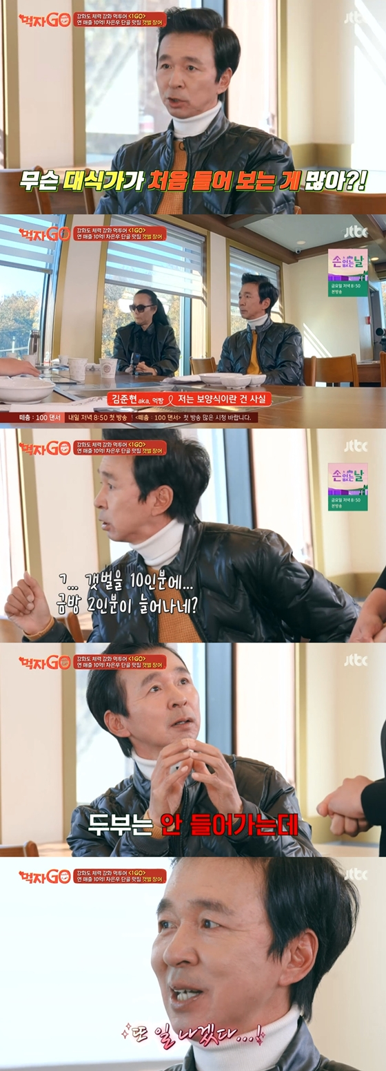 이어 도착한 식당에서 이대호는 10인분 주문을 언급했다. 이에 김국진은 깜짝 놀랐고 "10인분을?"이라고 말했다.
