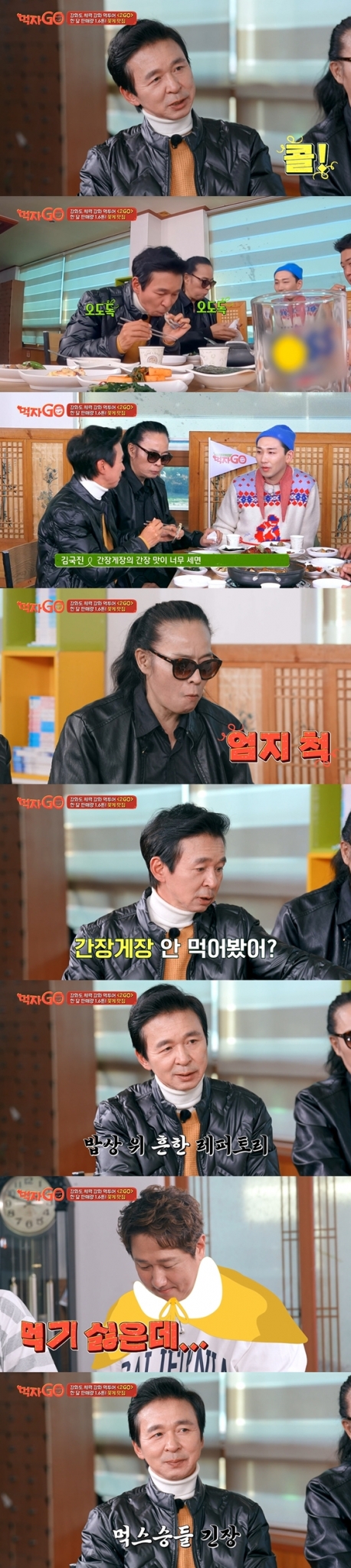 게장이 나온 후 김국진은 "손으로 들고 먹어야 제맛이야. 태원아"라고 말했고, 김태원은 젓가락을 내려놓고 손으로 간장게장을 들고 먹었다.