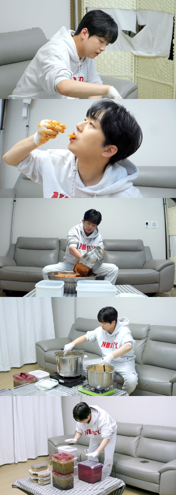 이찬원의 대용량 요리는 여기서 멈추지 않았다. 이찬원은 곧바로 도토리묵 100인분을 직접 쑤기 시작했다. 도토리묵이 눌러 붙지 않도록 젓고 또 젓던 이찬원은 구수한 맛의 아이스크림으로 당을 섭취하며 다시 힘을 냈다. 그 결과 이찬원은 수제 도토리묵 100인분에 이어 특기 중의 특기인 겉절이 100인분까지 뚝딱 완성했다.