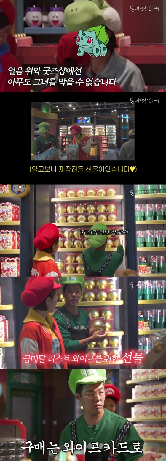 또한 강남은 "와이프가 금메달리스트"라며 황금 버섯 모양의 인형에 욕심을 냈다. 아내에게 주겠다는 버섯 인형은 정작 이상화의 카드로 구매해 웃음을 자아냈다.