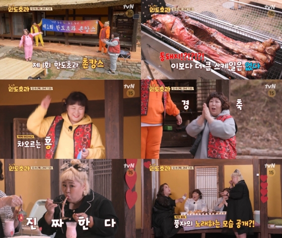 특히 상상 이상의 맛과 사이즈를 자랑하는 통돼지바베큐 파티는 시청자들의 눈과 입을 모두 사로잡을 전망. 김민경은 살코기가 국수 가락처럼 쭉쭉 찢어지자 "이거 면처럼 후루룩해야 하는 거 아닙니까"라며 놀라움을 내비쳤다는 후문이다. 한도초과 맛을 자랑하는 김장부터, 김장과 어우러지는 이색 통돼지 바베큐 먹방에 나서는 등 '촌캉스'를 제대로 즐기는 4인방의 모습은 오늘(8일, 목) 저녁 7시 20분에 방송하는 '재미에는 한도가 없다! 한도초과' 3회에서 직접 확인할 수 있다.
