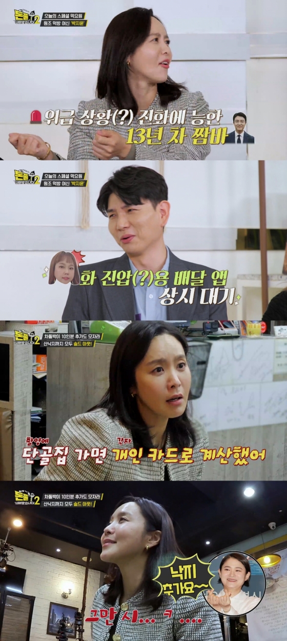 박지윤은 "예전에는 '배부르다'를 모르고 먹었다"라며 과거 활약을 언급했다. 이어 자신이 예민해질 때마다 남편 최동석이 먹을 것을 찾는다고 말했다. 이에 제이쓴이 "저도 아내 홍현희가 짜증나 보이면 배달앱을 켠다"라고 거들었다.