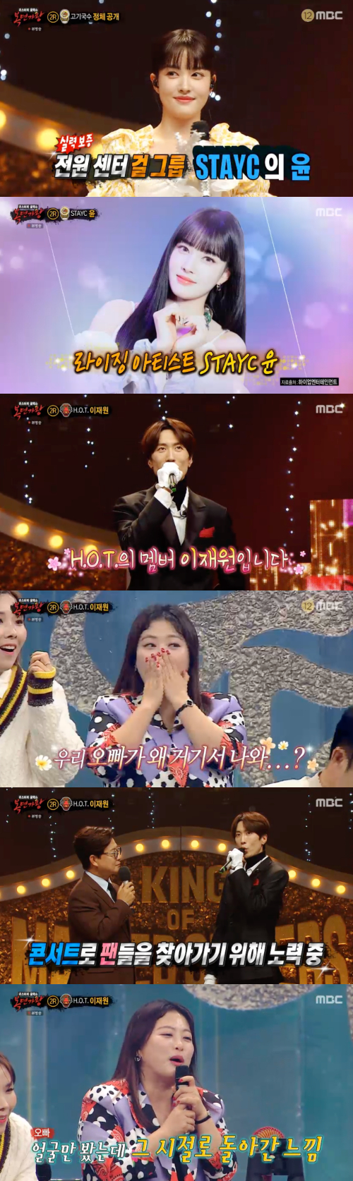 시종일관 그룹 인피니트 이성종을 확신하던 심진화에 이재원은 "'무한도전' 때도 되게 많이 우신 걸로 알고 있다"라고 답했다. 이에 심진화는 "콘서트 티켓팅도 성공해서 앞줄에 앉아 누구보다 오열했다. 심지어 제일 좋아한 멤버가 이재원 씨인데. 얼마나 놀랐냐면 이 세상이 멈추는 거 같았다. 우리 오빠가 나올 거라고 상상도 못 했다"고 속상해했다.