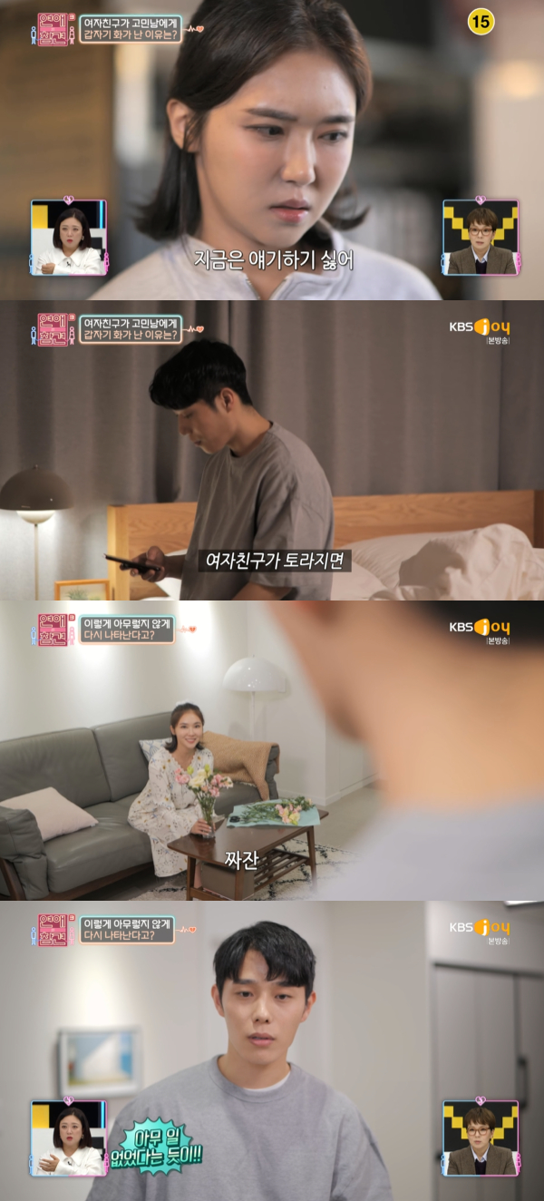 '연애의 참견3'에서 고민남이 말없이 토라진 여자친구에 답답해했다.
