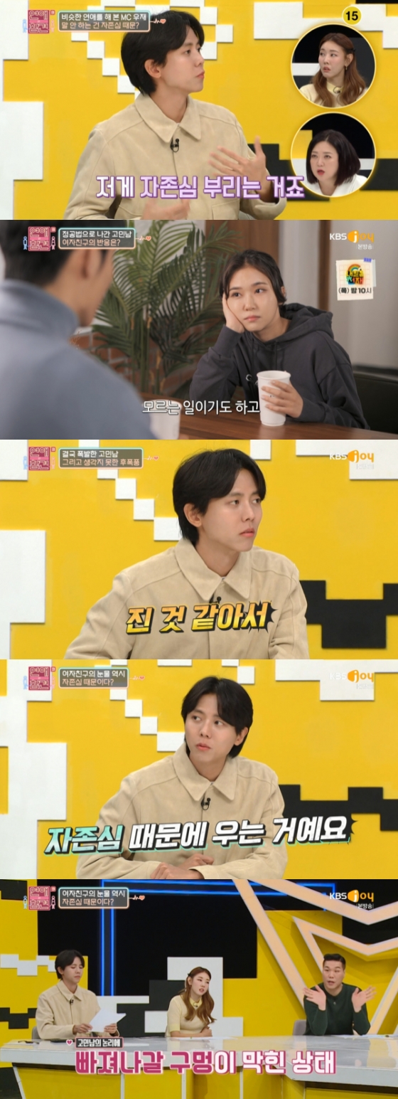 '연애의 참견3'에서 주우재가 고민남의 여자친구가 자존심이 세다고 말했다.
