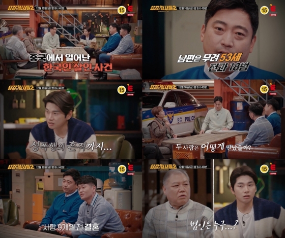 형사들은 남편을 유력한 용의자로 보고 행적을 확인했지만 남편은 피해자가 사망하던 당시 중국에는 절대로 갈 수 없는 상태였다. 남편이 있었던 곳을 듣고 패널들 모두 '멘붕'에 빠졌다고 하는데, 과연 남편은 어디에 있었던 것일지 궁금증을 자아낸다. 16일 오후 8시 40분 방송.
