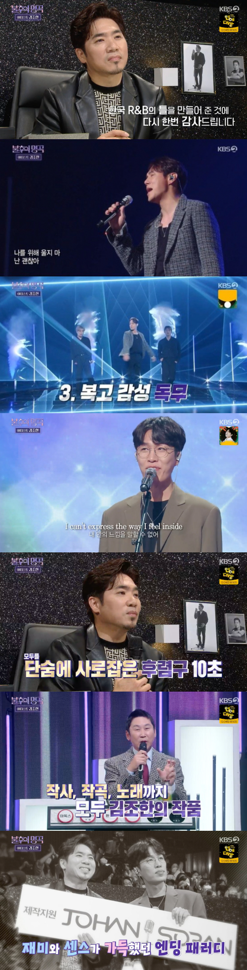 모든 무대가 끝난 뒤, 김조한은 "상당히 생각이 많아졌다. 한 곡씩 너무 열심히 불러주시니 김조한 잔치같은 느낌이었다. 너무 감사하고 눈물 날 것 같다. 처음에는 너무나 떨렸는데, 첫 곡을 듣고나니 오늘 선물만 받는 구나 하는 느낌이 들었다. 더 열심히 해야겠다는 생각이 들었다"라고 출연 소감을 전했다.