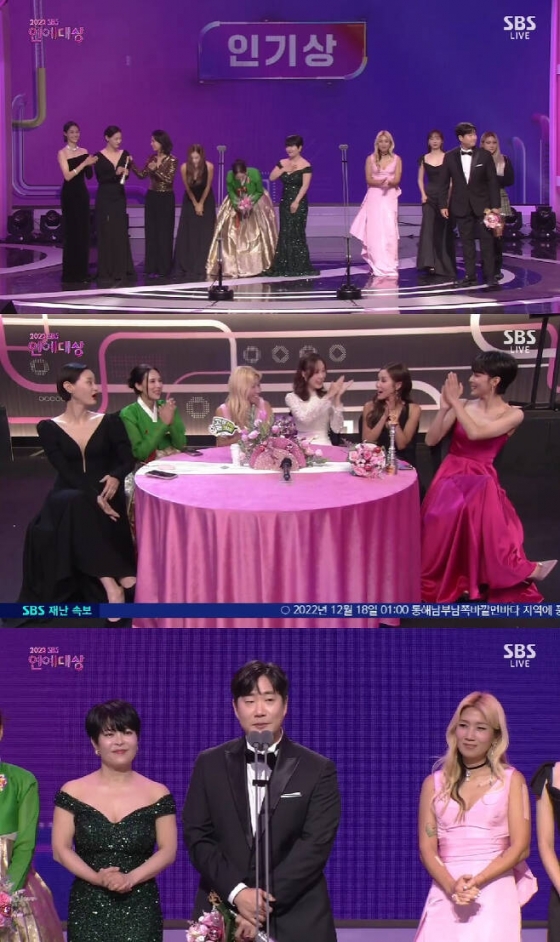 인기상은 '골 때리는 그녀들'(이하 '골때녀') 시즌3 주장단과 캐스터 배성재가 독식했다.