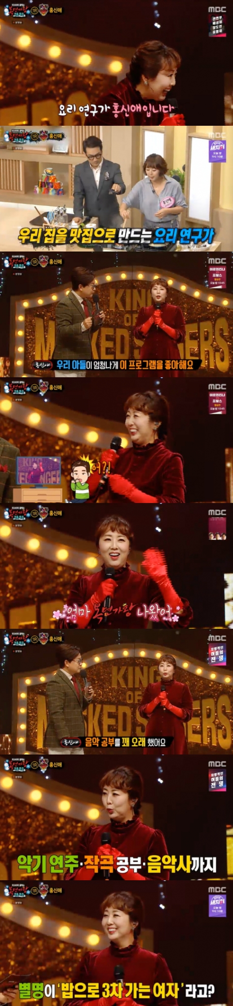 MC 김성주는 "홍신애씨가 복면가왕에 나올 거라고 예상을 많이 못했을 것인데, 복면가왕에 출연하신 이유가 무엇인가요?"라고 물었다.