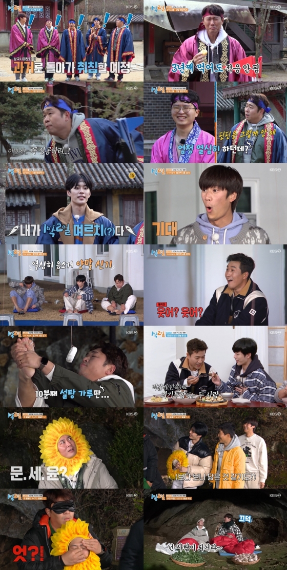 이후 멤버들은 야외 취침에 당첨됐던 뗀석기 팀(연정훈 나인우)의 취침 장소인 한드미 동굴로 향했다. 이곳에서 기상 미션이 없는 대신 새벽 2시부터 아침을 준비해야 할 팀이 결정된다는 소식이 전해졌다.