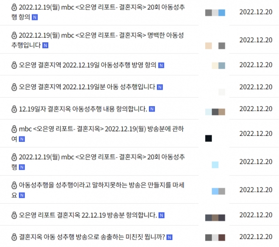 20일 오후 MBC 소통센터 공식 홈페이지 내 'MBC에 바란다' 게시판에는 예능프로그램 '오은영 리포트 - 결혼지옥'(이하 '결혼지옥')에 대한 시청자들의 의견이 다수 게재됐다.