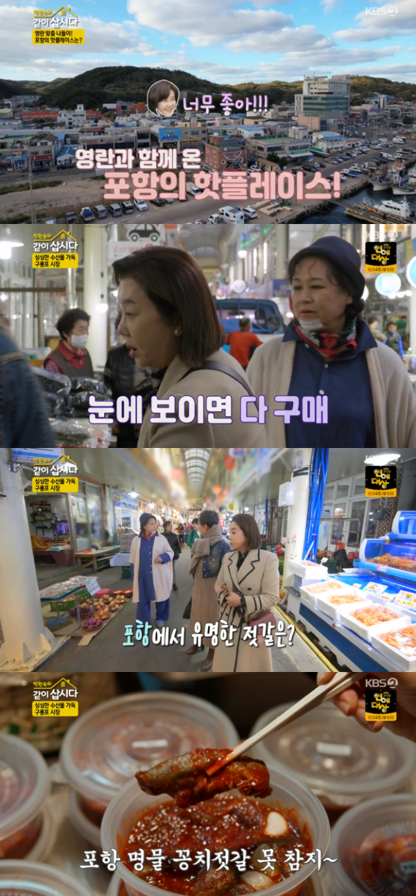 20일 오후 방송된 KBS 2TV 예능프로그램 '박원숙의 같이 삽시다3'에서 '시장 킬러' 김영란이 구룡포 전통시장에서 쇼핑을 즐겼다.