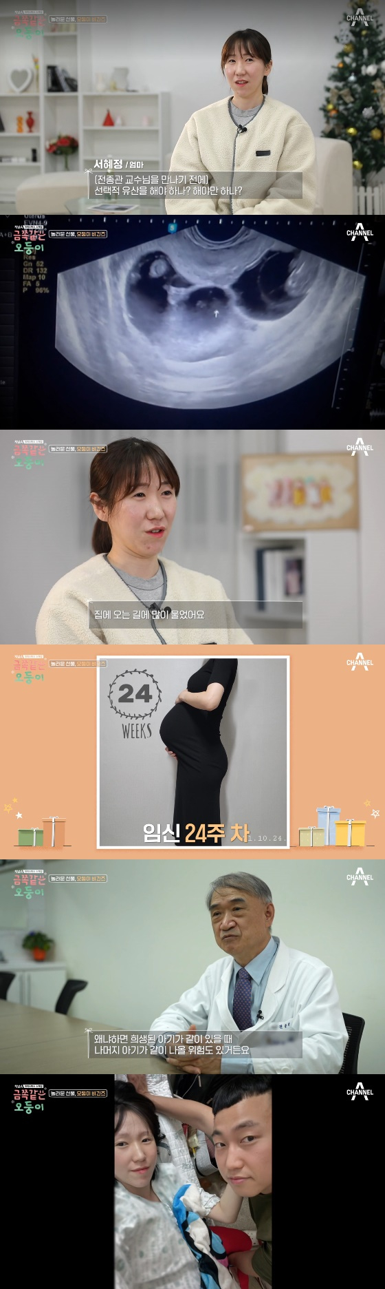 선택적 유산에 대한 전문가의 의견도 공개됐다. 서울대병원 산부인과 전종관 교수는 "다섯 명의 아기를 이끌고 가지 않는다고 하면 결국은 한 명이나 두 명을 선택해야 한다. 그런데 그 선택하는 기준이 애매하다"며 "아기를 한 명이나 두 명을 희생시키면 (다른 아기들의) 예후가 좋을지는 모르는 거다. 왜냐하면 희생된 아기가 같이 있을 때 나머지 아기가 나올 가능성도 있다"고 밝혔다.