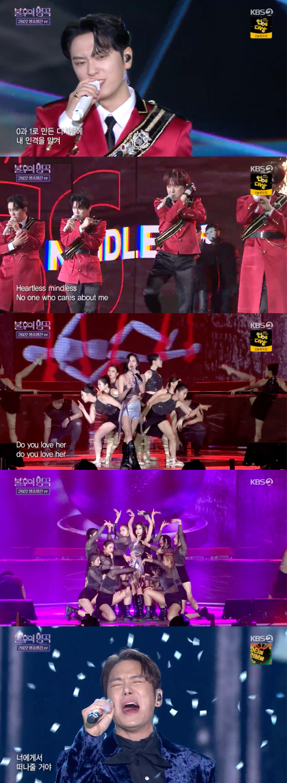 24일 오후 방송된 KBS 2TV 예능 프로그램 '불후의 명곡'에서는 '2022 왕중왕전' 1부가 그려졌다.
