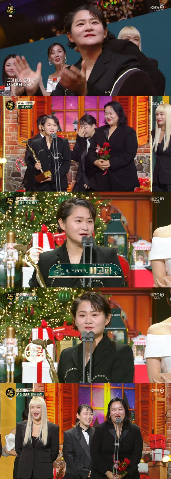이에 '빼고파' 멤버였던 배우 하재숙은 "다 먹고 살자고 하는 일이라 '빼고파' 촬영이 끝나자 다시 먹었다"며 "열심히 살라는 의미로 받아들이고 열심히 살아보겠다"는 수상 소감을 밝혔다.