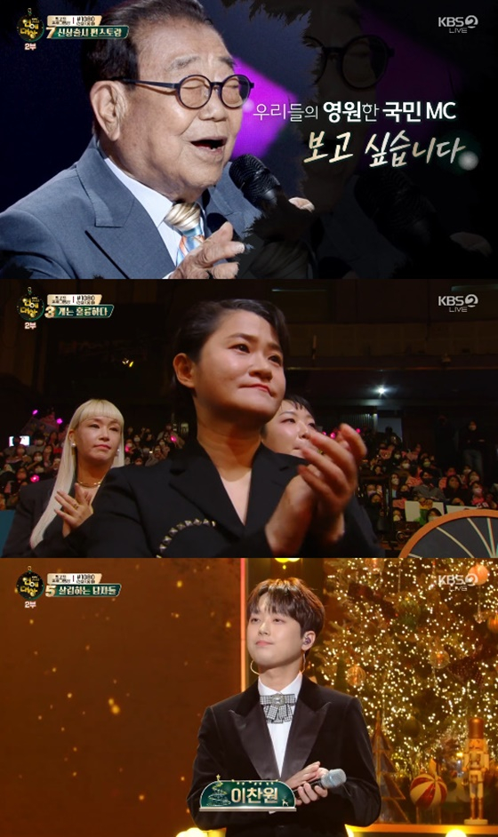 이찬원의 특별 무대도 이어졌다. 이찬원은 송해를 그리워하는 마음을 담아 '내 인생 딩동댕'을 불렀다.