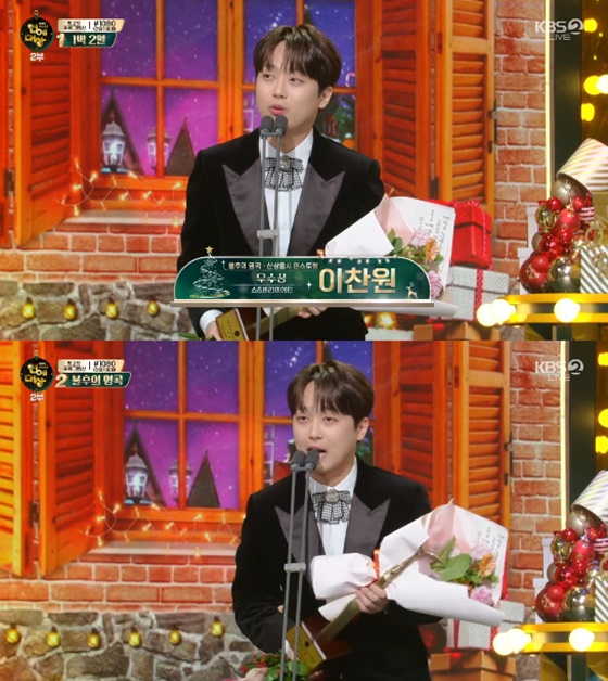 이날 '불후의 명곡', '신상출시 편스토랑'에서 활약한 이찬원이 쇼 버라이어티 부문 우수상을 받았다.