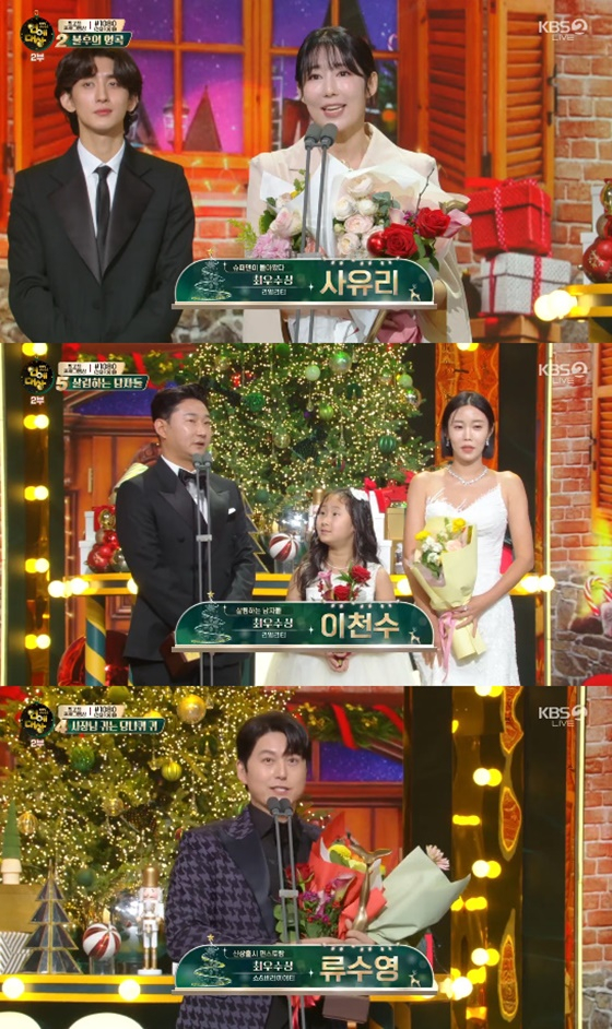 '2022 KBS 연예대상' 최우수상은 사유리, 이천수, 류수영이 차지했다.