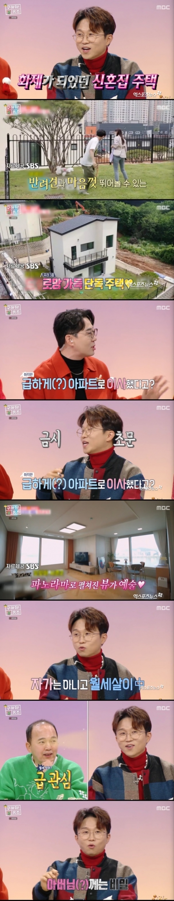 박성광은 당황해하며 "급하게라니. 쇼 아니다. 영화 사무실이 강남에 있다 보니 거리가 너무 멀었다. 그래서 이사했다. 우리 집이 아니라 월세로 살고 있다"라고 답했다. 관심이 생긴 김광규는 "월세는 얼마냐" 라고 물었고, 이에 박성광은 "아버님은 있을 데가 아니"라며 놀렸다. 김광규는 "아버님이라니 몇 살 차이 난다고"라며 발끈해 웃음을 자아냈다.