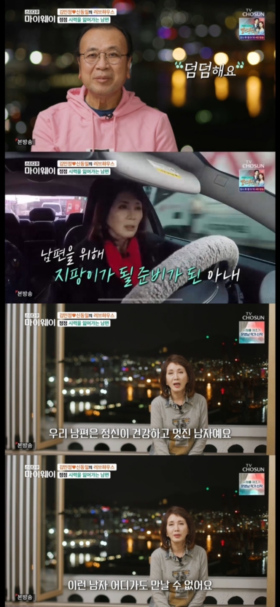 김민정 역시도 "내 남편은 눈이 안 보이게 되도 그냥 가만히 앉아 있을 사람이 아니다. 지금부터 본인이 스스로 훈련을 하고 있다. 아주 안보이게 된다해도 나는 남편을 위해 지팡이가 될 준비가 됐다.충분히 둘이 행복할 거다. 눈이 안 보이는건 우리에게 전혀 문제가 되지 않는다. 정신적인 게 더 중요하다. 우리 남편은 정신이 건강하고 멋진 남자다. 이런 남자 어디가도 만날 수 없다"라며 남편에 대한 깊은 애정을 드러냈다.